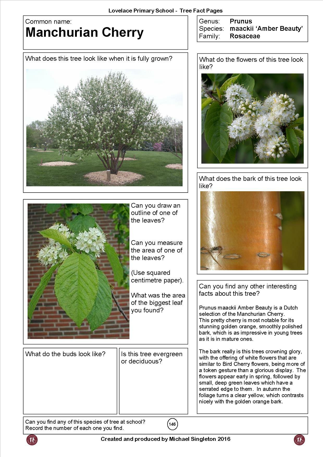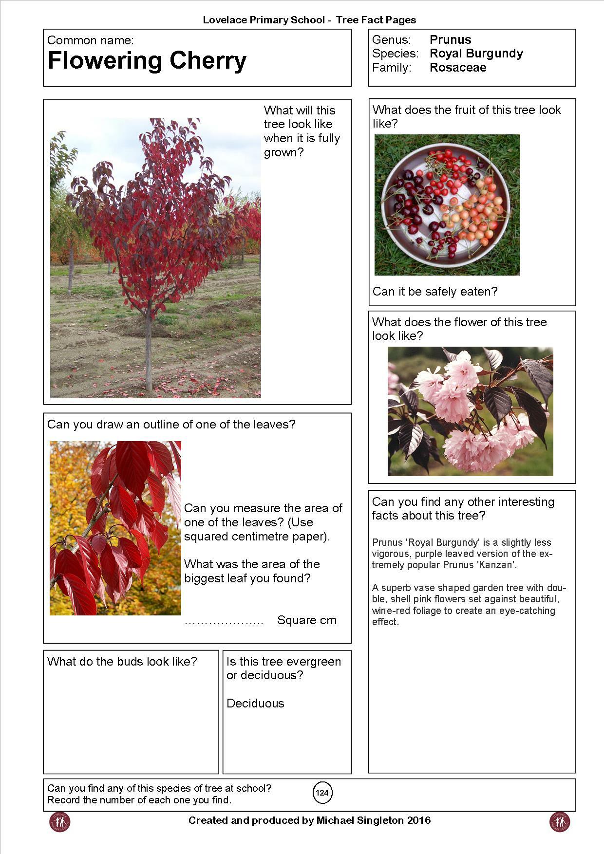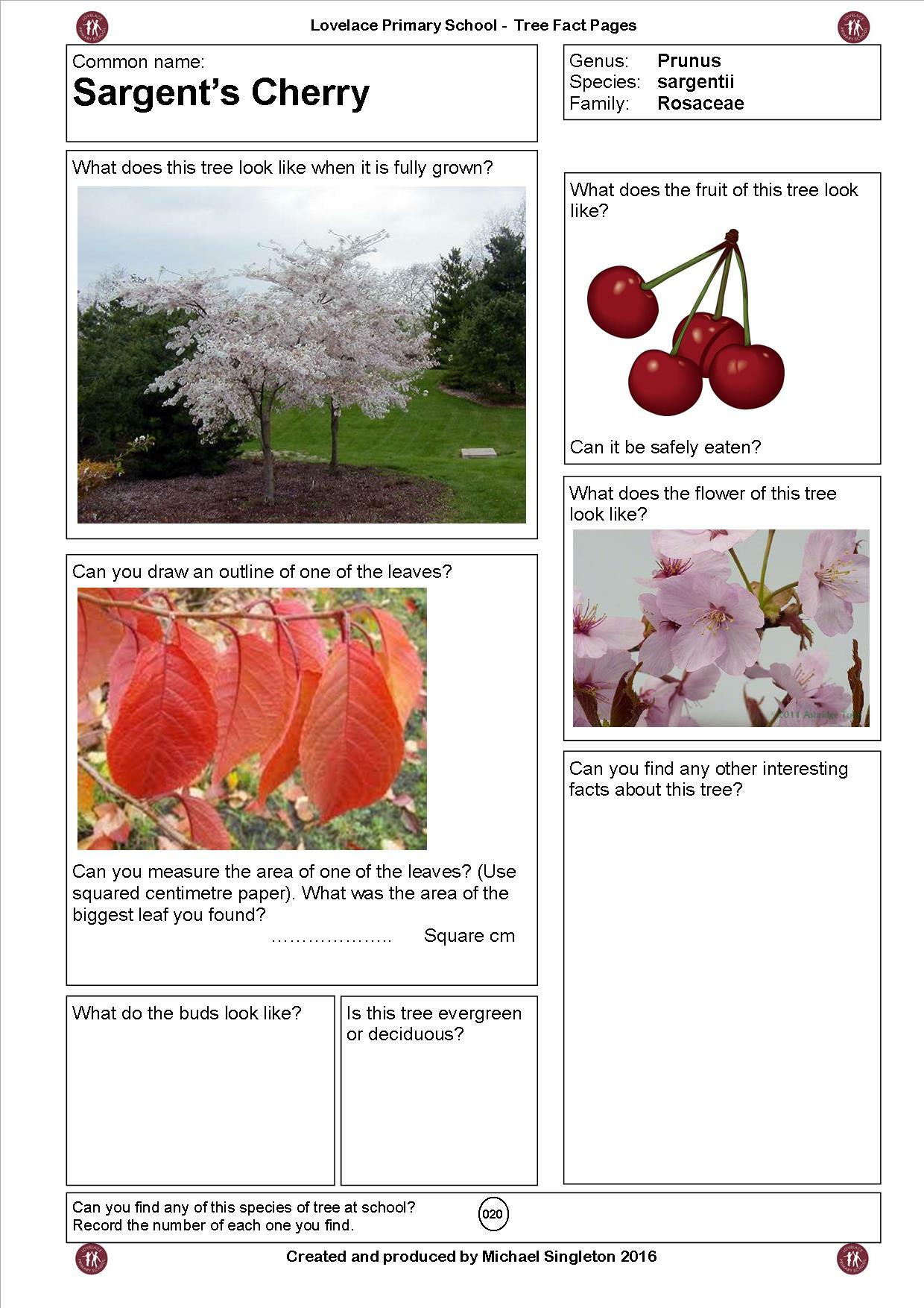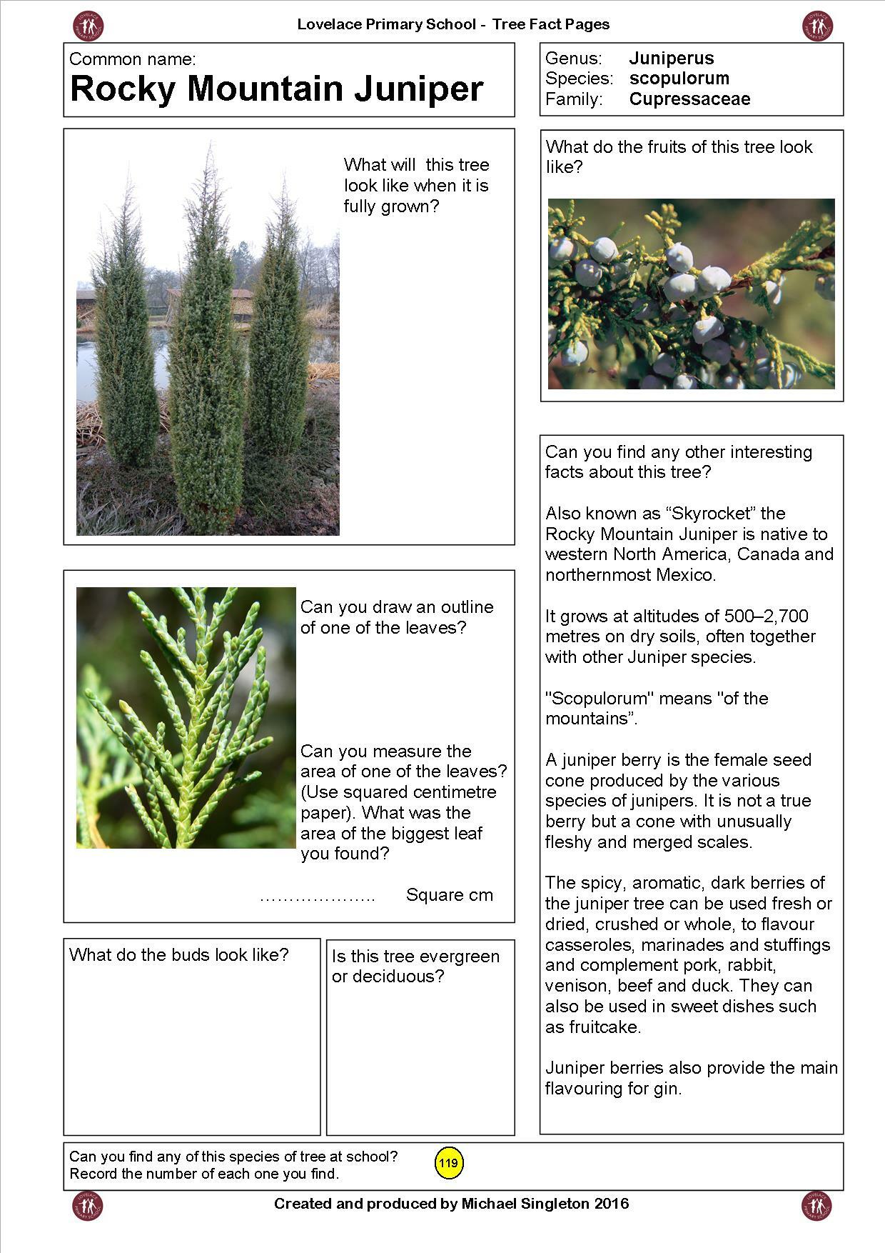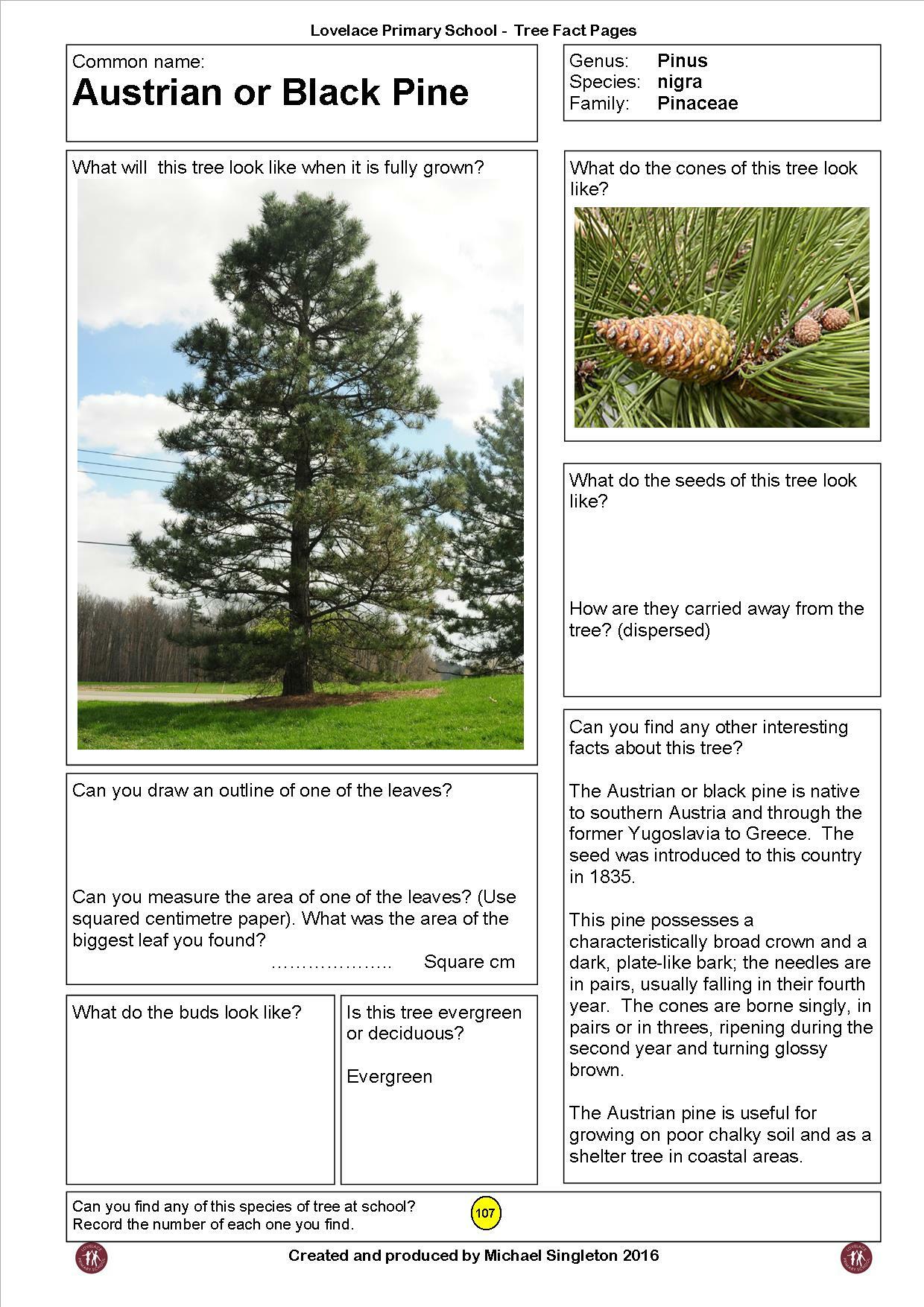 Each tree has been given a unique ID number printed on a white disc fixed to the trunk and the lists and map are kept updated in school by the premises manager. As a preview of this project we have listed a number of images of the fact pages children use as part of their outdoor learning.